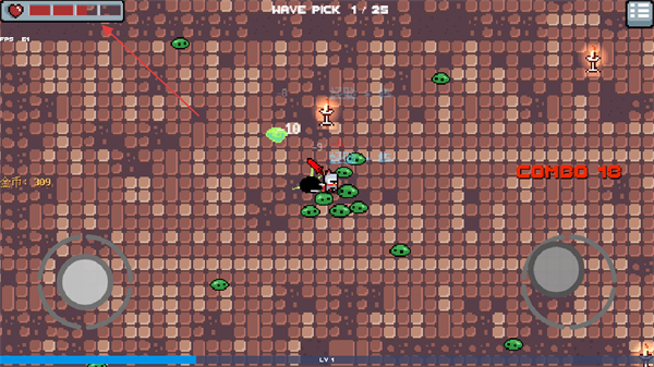4、消灭怪物时会掉落道具和金币,收集这些资源以提升角色能力,完成WAVEPICK目标,逐步通关地牢。