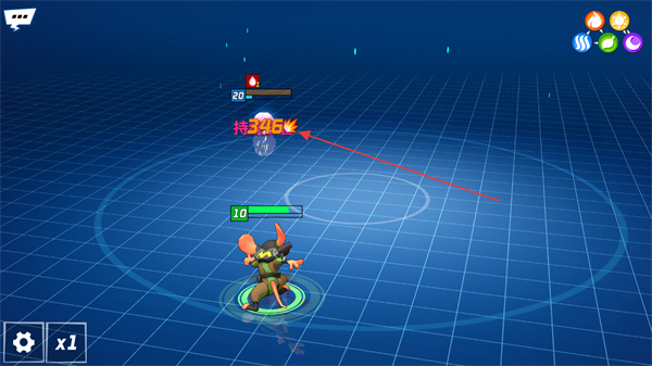 2、操控角色移动,瞄准上方带20数值的目标,准备释放技能进行攻击。