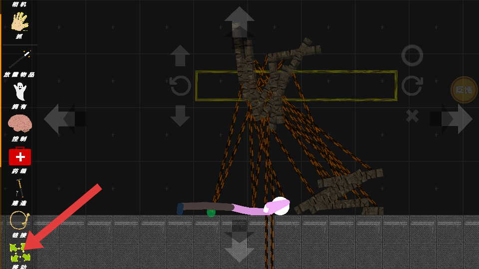 3、选择箭头指向的连接功能,能将不同的物体如石块、绳索等进行连接,打造更复杂的装置或结构,拓展游戏创作的可能性。