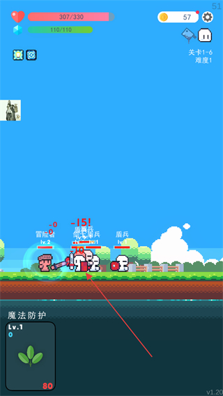 2、带着魔法防护效果进入关卡4,抵御敌人伤害,稳定战斗状态。