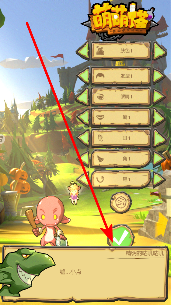 1、进入游戏,在捏脸界面调整小怪兽肤色发型等7类细节,搭配出独特外观,点击下方绿色对勾确认,完成角色个性化定制,开启冒险第一步。