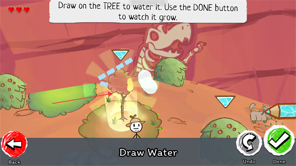 以绘画为核心互动方式,面对不同困难需针对性创作:遇障碍画工具清除,遇怪物画武器战斗,玩法直观且充满创意,让每次克服困难的过程都与绘画紧密结合。