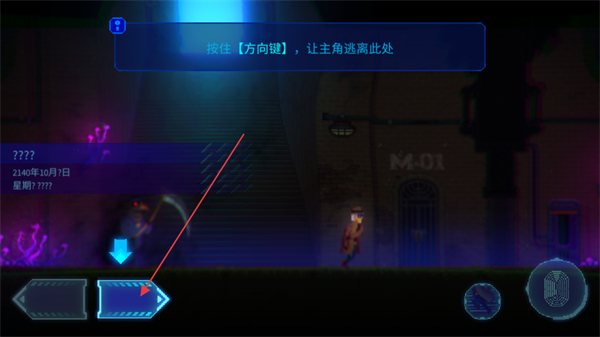1、根据指引按住方向键,控制主角向指定方向移动,逃离当前区域。