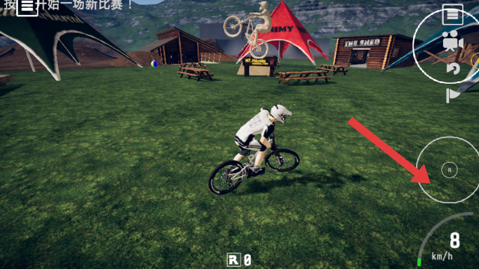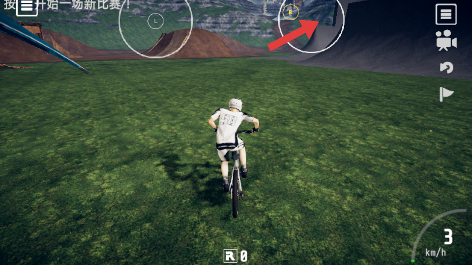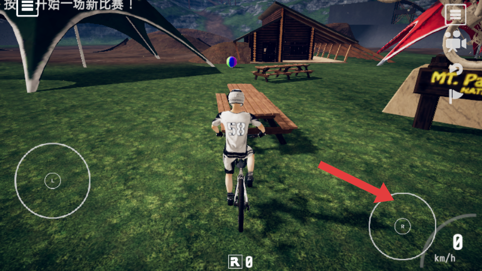 2、当需要调整骑行方向时,点击箭头指向的右侧R按钮,配合其他操作,可改变骑行方向,在场地中灵活穿梭,适应不同地形的骑行需求。