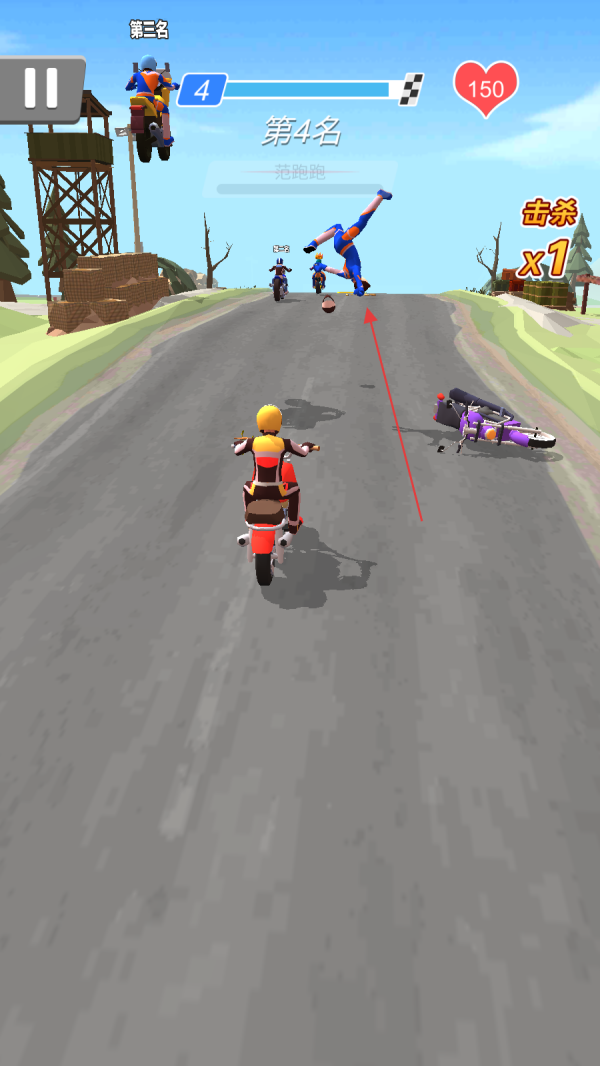 3、当与前方对手距离较近时,点击攻击按钮使用武器对对手发起攻击,成功击杀对手后会获得额外积分,继续专注赛道保持行驶节奏。