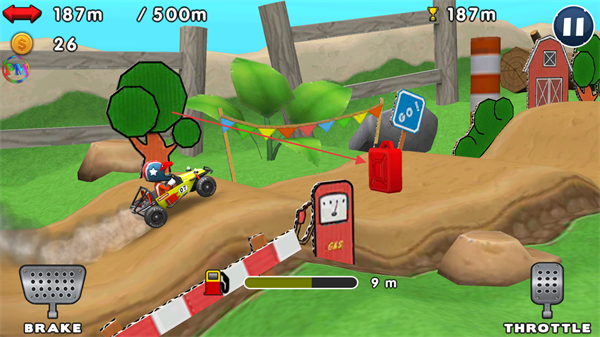 3、靠近红色油桶补充燃油,保持赛车动力,继续向500m目标推进。