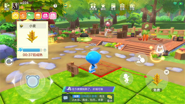 4、收到你的作物成熟了提示后,点击成熟的小麦进行收获。