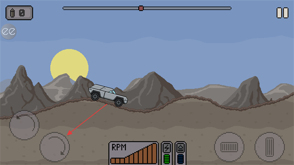 2、驾驶赛车爬坡,注意上方进度条,推进游戏进程。
