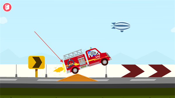 3、驾驶过程中,可利用赛道上的坡道等地形,让消防车腾空,增加游戏趣味。