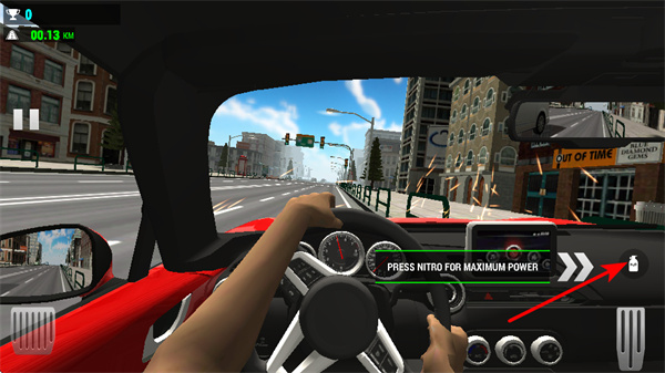 2、在需要加速时,点击氮气按钮,这是提升动力的核心操作,使用后车辆可获得短时极速,助力快速通过路段。