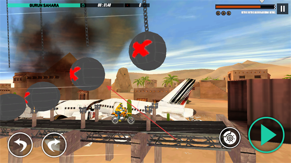 3、在赛道上躲避摆动的铁球等障碍物,避免碰撞,确保摩托车行驶安全。