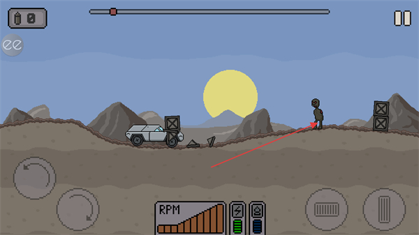 3、点击右侧加速按钮,提升赛车速度,助力爬坡和撞击僵尸。