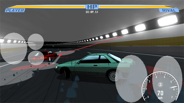 2、调整右侧仪表提升车速如到73mph,在隧道中保持行驶,紧盯对手车。
