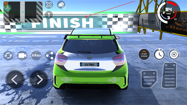 4、操控车辆沿赛道持续行驶,直至到达标有FINISH标识的终点区域,完成当前关卡的驾驶挑战,推进关卡进度。