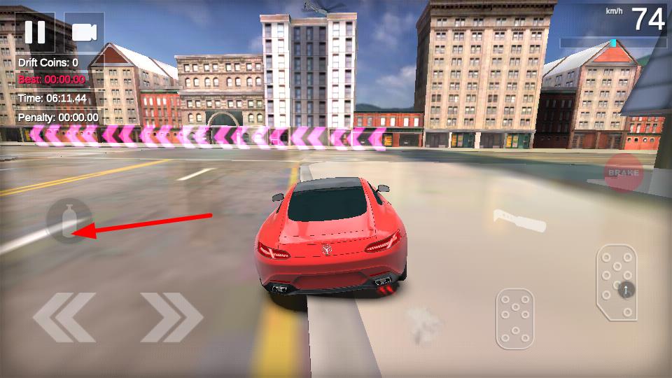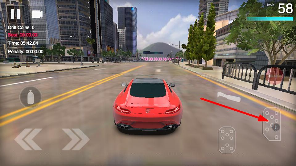 1、点击右侧油门按键,可提升车辆行驶速度,在城市道路上快速前进,为漂移和竞速积累动力。