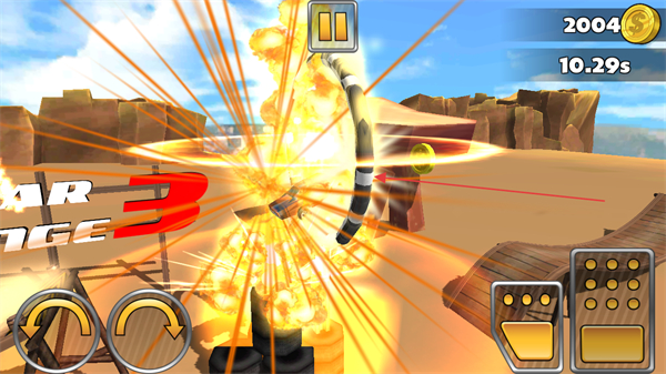 2、驾驶赛车穿越火圈等特技装置,完成高难度动作,触发爆炸特效,获取更多金币。