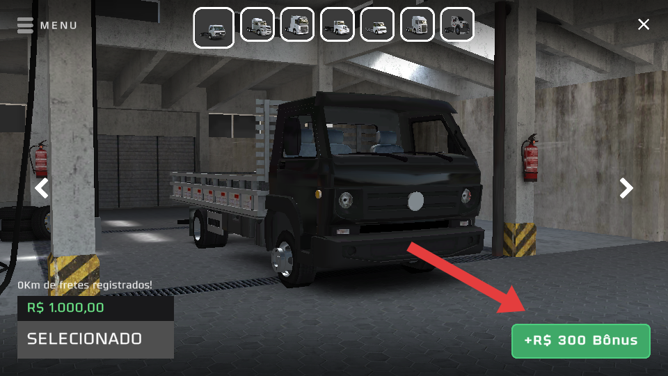 1、在车辆选择界面,点击+R$300Bônus按钮,可获取额外奖励,为后续游戏进程积累资源。