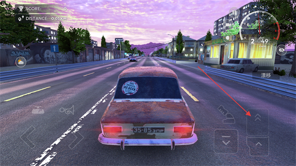 4、进入游戏驾驶界面后,通过操作按钮控制车辆行驶,可使用按键调整方向、进行漂移等操作,同时关注行驶状态以持续推进游戏。