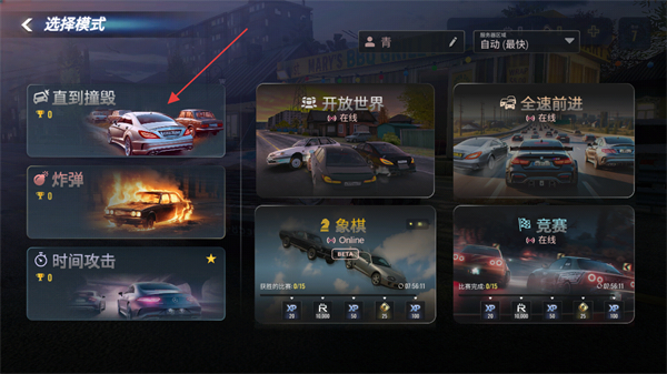3、在选择模式界面,可挑选对应游戏模式,例如点击直到撞毁模式,进入该玩法的驾驶挑战环节。