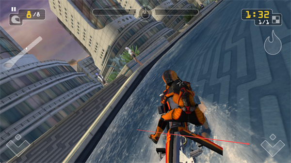 3、驾驶快艇在水面快速移动,调整角度,保持速度,向终点冲刺。
