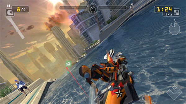重力感应模式让身体随快艇转向摇摆,配合3D画面与水花音效,仿佛置身真实水上竞速现场。