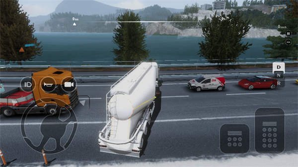 4、这是游戏的驾驶操作界面,选择D档可控制车辆进入前进状态,搭配方向盘等控件可完成卡车的驾驶操作。