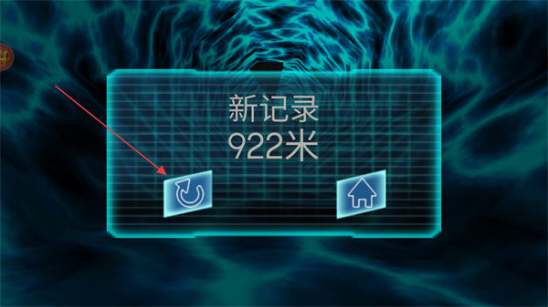 4、结算时查看新记录如922米,点击重玩按钮再次挑战。