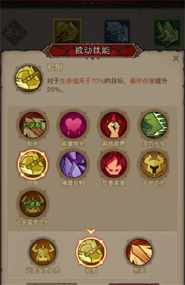 砍倒:基础怒气获取量15点,暴击额外+5点,技能释放后3秒内,下一次原力锤暴击率+50%,建议搭配"怒气爆发"符文(暴击时额外+10%技能伤害)与"快速冷却"天赋。