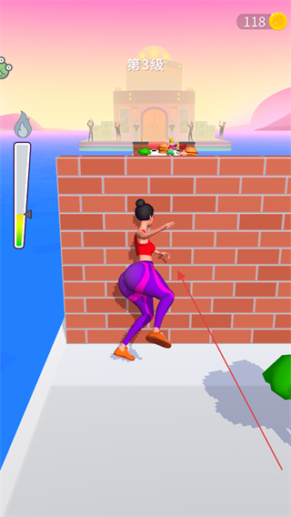 1、在第3级中,操控体型变大的角色攀爬砖墙,突破障碍继续前进。