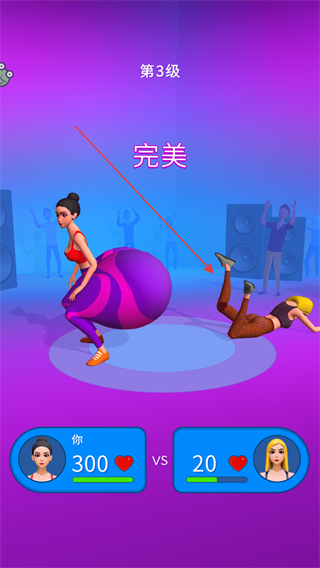 3、到达终点后与对手对战,凭借体型优势击败对手,获得完美评价。