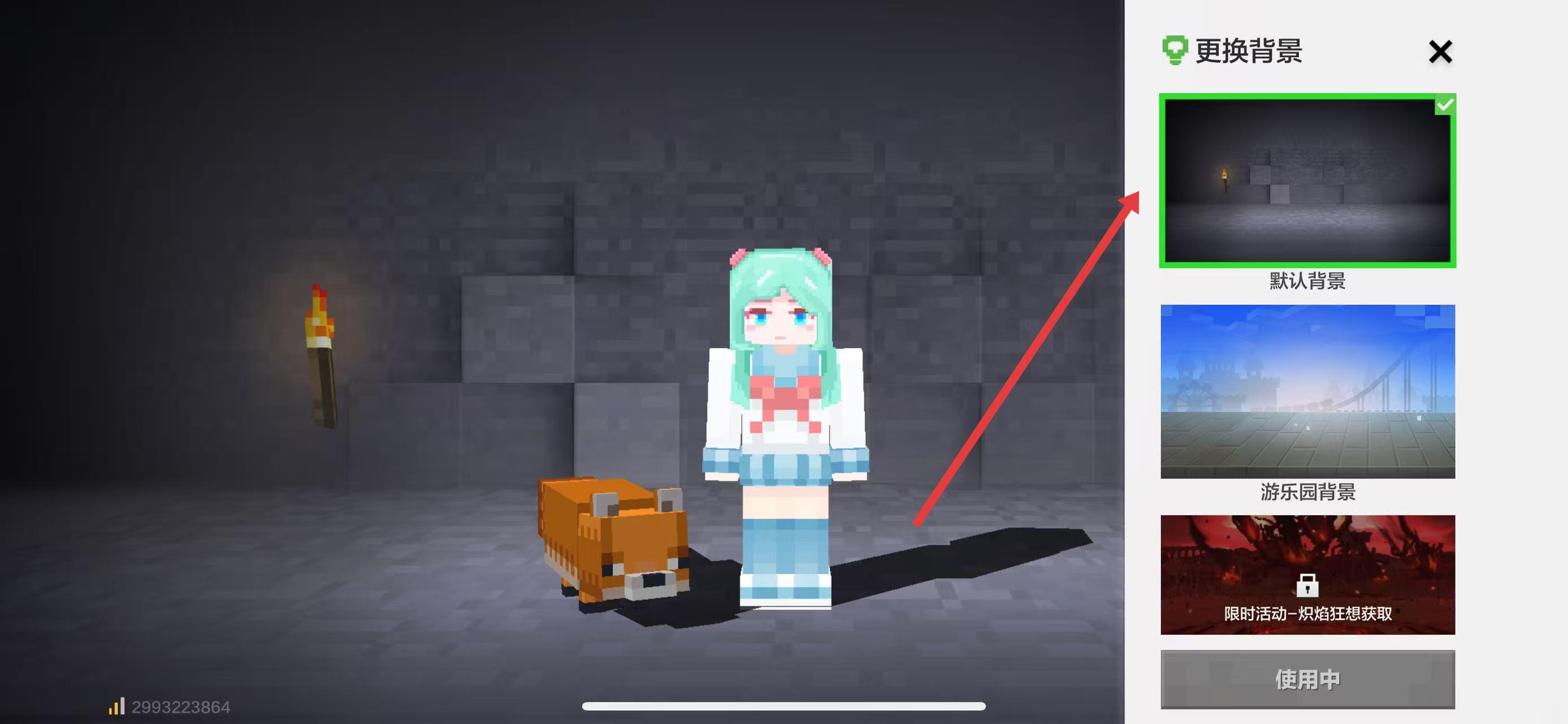 2、在更换背景界面,浏览可选背景如默认、游乐园等,点击想要更换的背景选项。