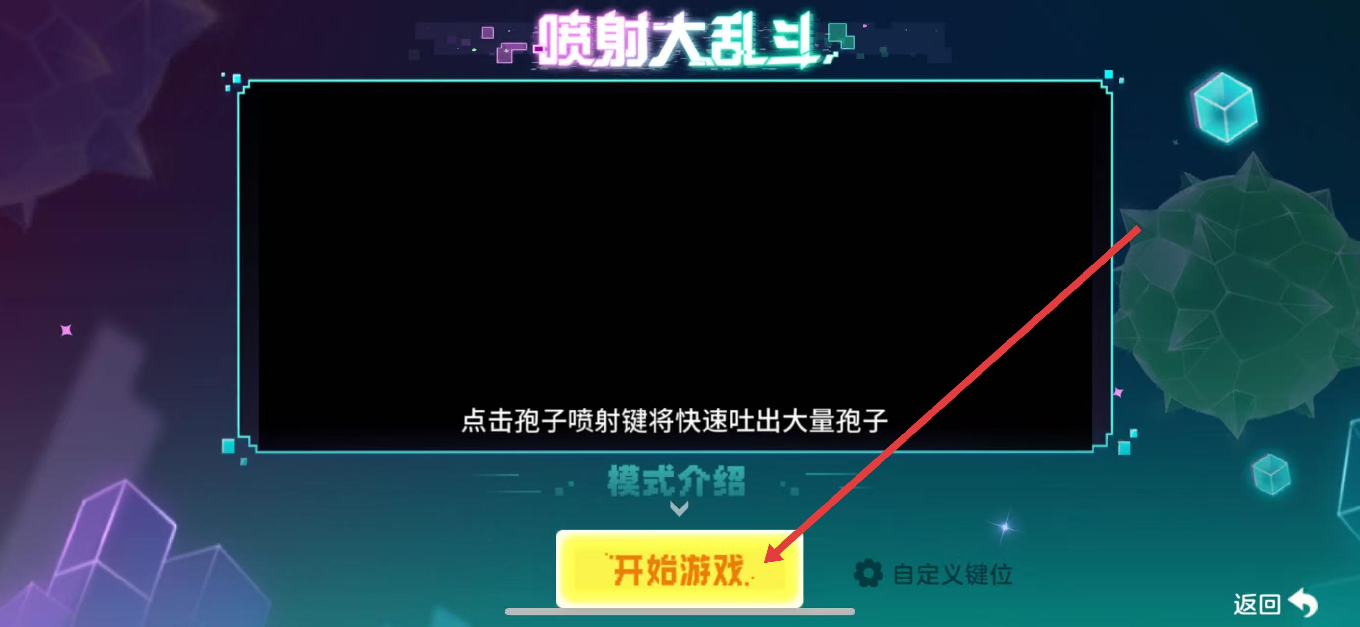 2、在喷射大乱斗准备页面,阅读模式介绍,了解点击孢子喷射键可快速吐出大量孢子后,点击开始游戏按钮。