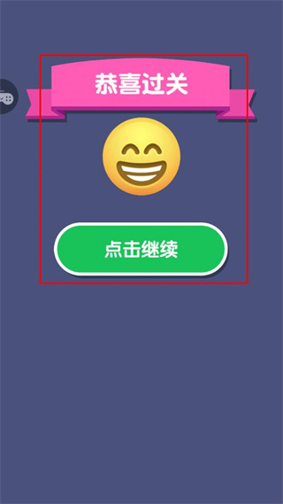 4、通关后等待界面显示恭喜过关弹窗,点击绿色的点击继续按钮,进入下一关。