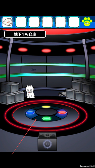 1、在地下1F仓库,互动彩色圆盘装置,进入道具操作界面。