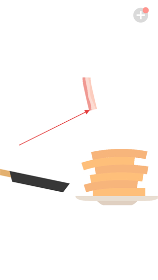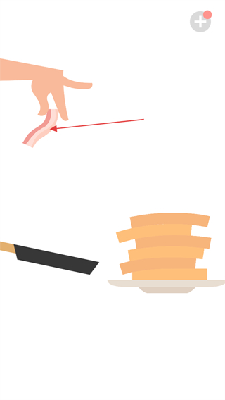2、跟随指引操作,将培根拖动到煎饼堆的上方位置。