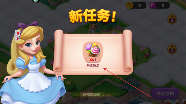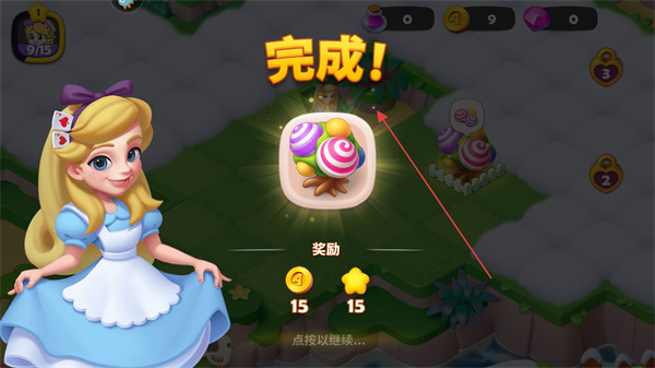 4、任务完成后,领取金币、星星等奖励,点击继续进入下一个任务。