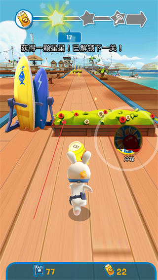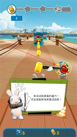 1、根据提示点击冲锋技能按钮,激活兔子技能,助力收集罐头。