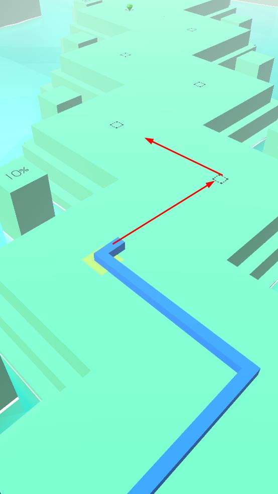 2、在移动过程中,可通过改变方向,让蓝色方块绘制出蓝色路径,沿着路径探索场景,收集场景中的元素,提升进度。