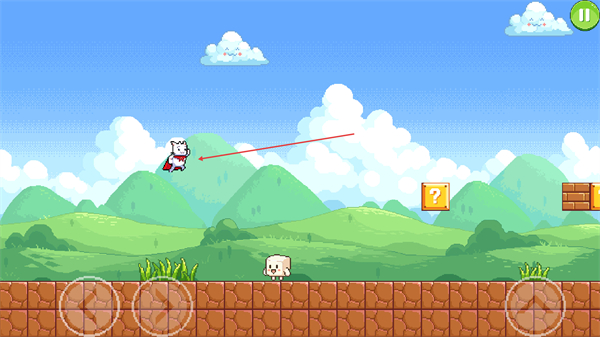 2、操控超级猫角色左右移动通过方向键,躲避场景中的敌人如方块怪物。