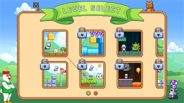 采用经典的像素美术风格,角色形象呆萌有趣,场景画面充满怀旧气息,瞬间唤醒玩家对老式闯关游戏的记忆,搭配魔性的陷阱玩法,形成独特的反差萌乐趣。