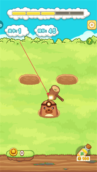 4、使用道具如木椎击中地鼠,可获得更高分数,完成关卡目标。