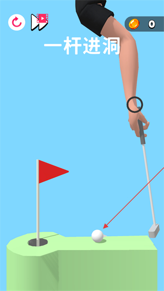 3、精准击球,让球落入洞中,完成一杆进洞挑战。