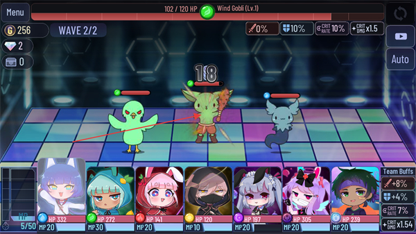 2、进入WAVE2/2对战,操控己方角色攻击敌方怪物,推进战斗。