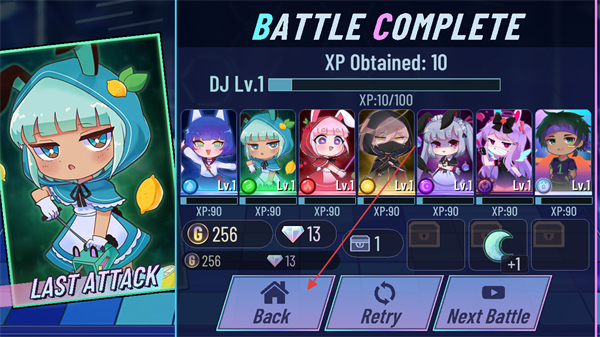 4、战斗完成后,点击Back返回主界面,结束本次对战。