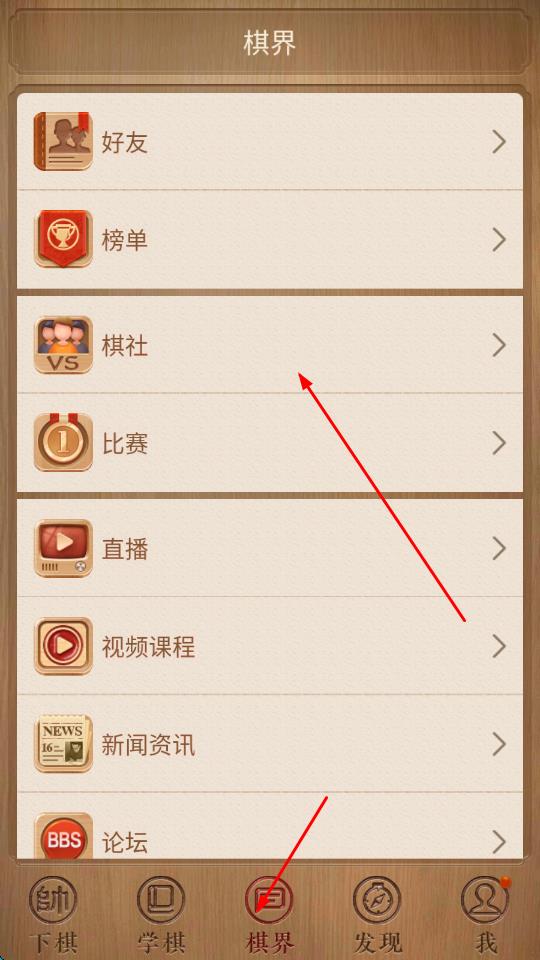 1、打开天天象棋游戏,在棋界界面里,点击棋社选项,进入棋社页面。