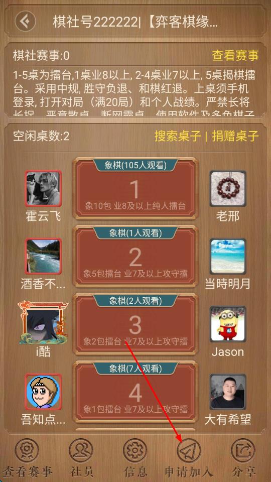 3、在棋社详情页面,点击申请加入按钮,等待棋社管理员通过您的申请后,即可成功加入该棋社。