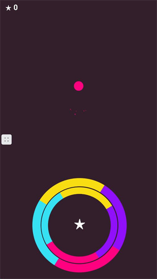 2、进入游戏后中心出现粉色小球,下方有彩色圆环含黄蓝紫粉区域,等待小球下落点击对应颜色。