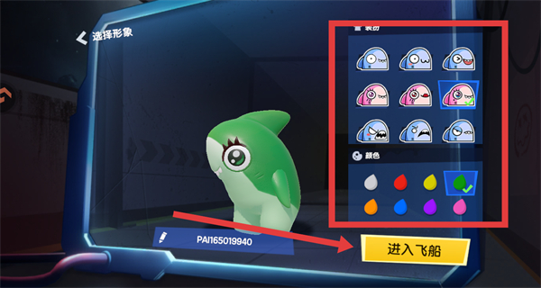 3、在选择形象界面,挑选喜欢的装扮和颜色,设置完成后点击进入飞船。