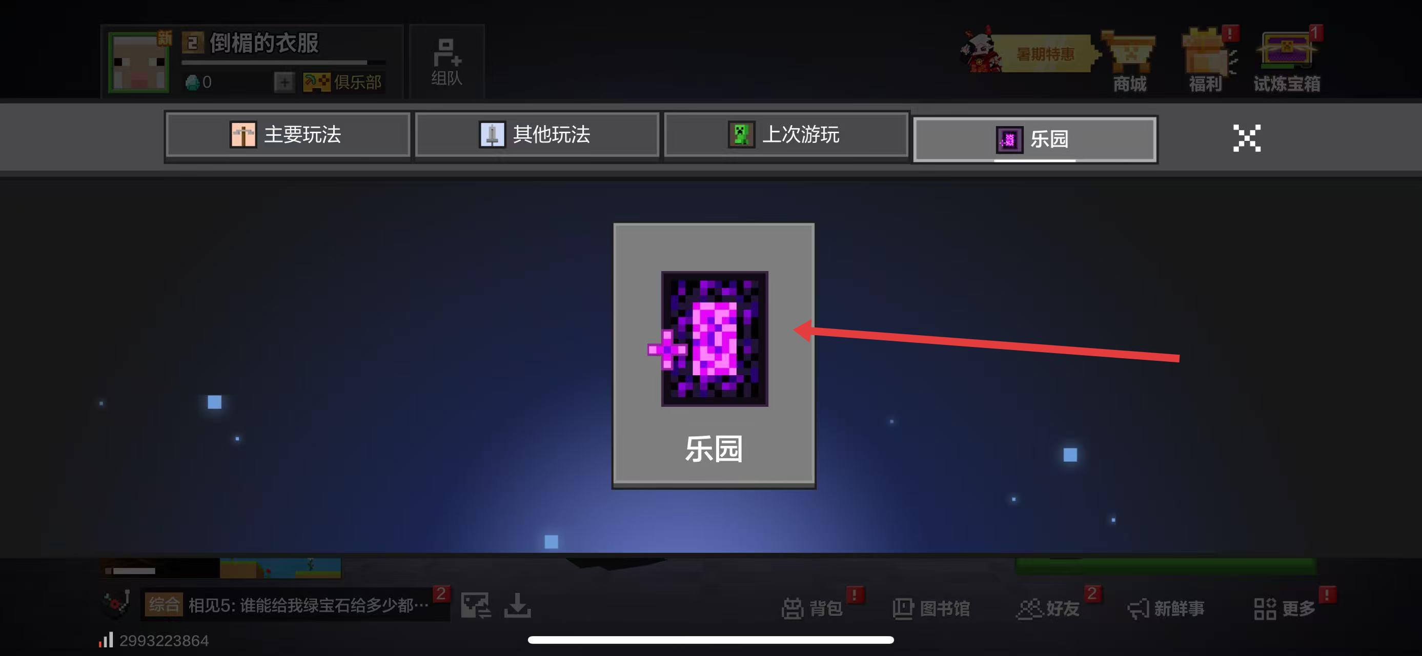 1、在玩法选择界面,点击乐园分类下的乐园玩法图标,进入方块乐园模式。