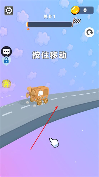 3、按照提示按住屏幕使组装好的车辆在道路上移动。